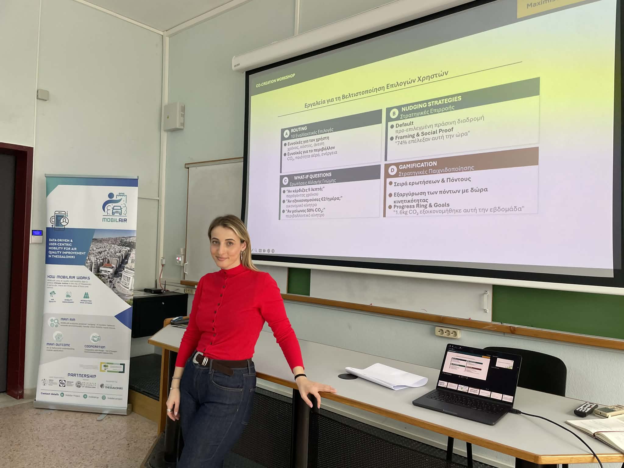 On 31 March 2026, the School of Civil Engineering at the Aristotle University of Thessaloniki (AUTh) hosted an energetic, hands-on co-creation and validation workshop, bringing together postgraduate students from the MSc programme “Environmental Protection and Sustainable Development” and the MOBILAIR research team. The session put the MOBILAIR application to the test, with fresh eyes and sharp minds.The workshop was designed not just as a demonstration, but as a genuine co-creation and validation exercise, structured around three core activities: